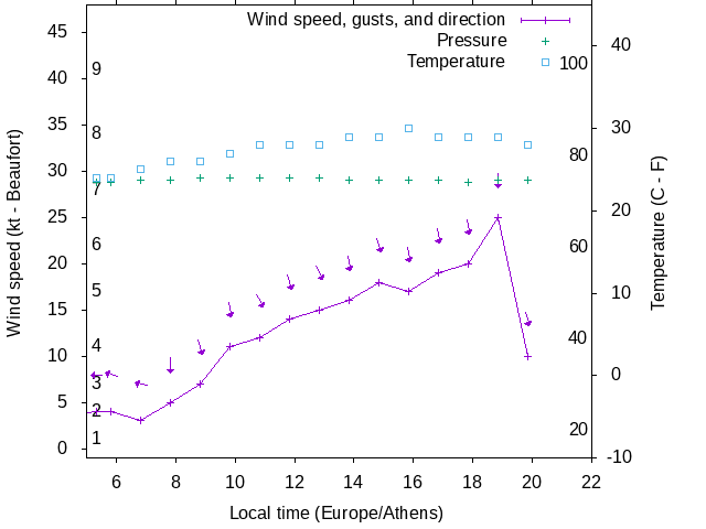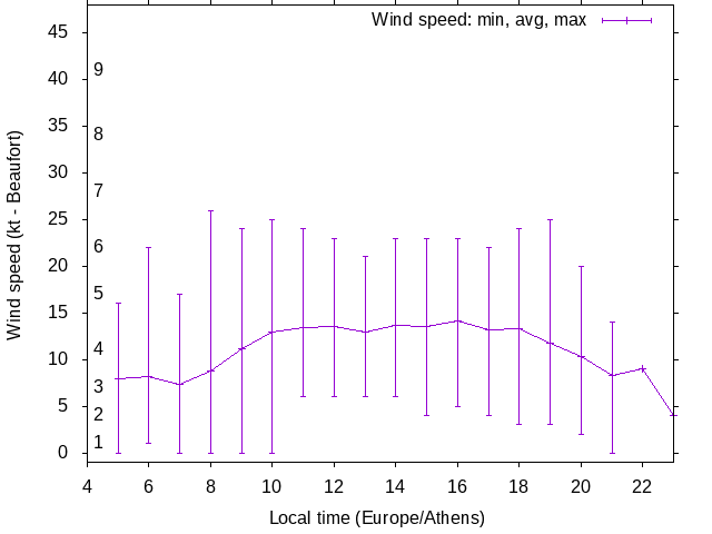 Dawn after 4:00; dusk before 23:00 local time (Europe/Athens).