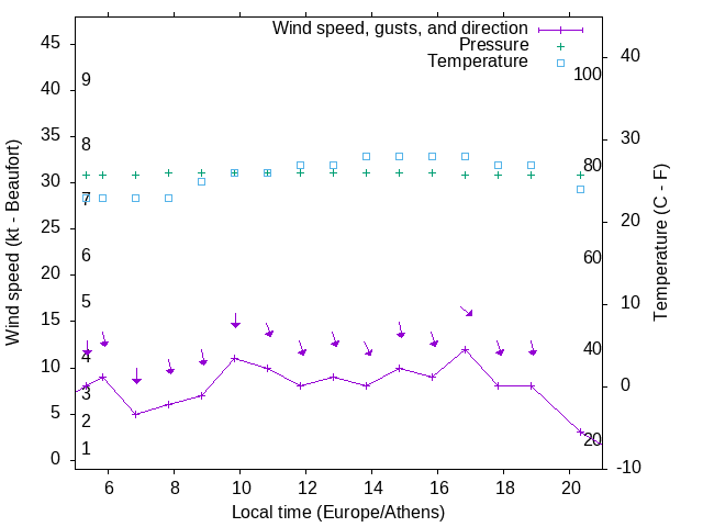 Dawn after 5:00; dusk before 21:00 local time (Europe/Athens).