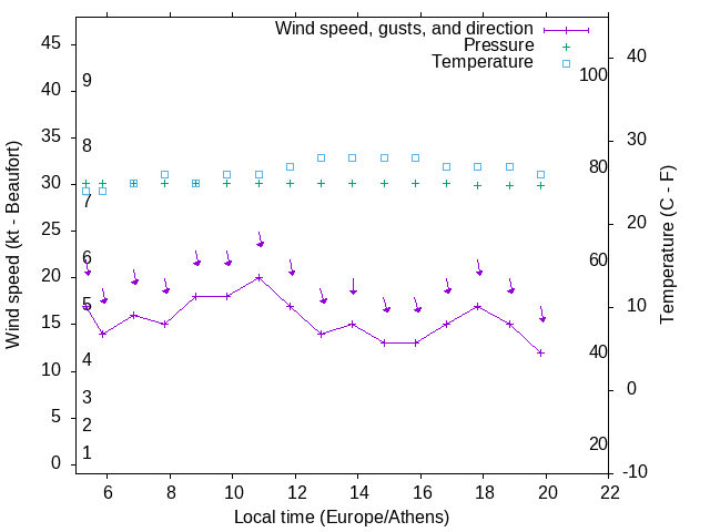 Dawn after 5:00; dusk before 22:00 local time (Europe/Athens).
