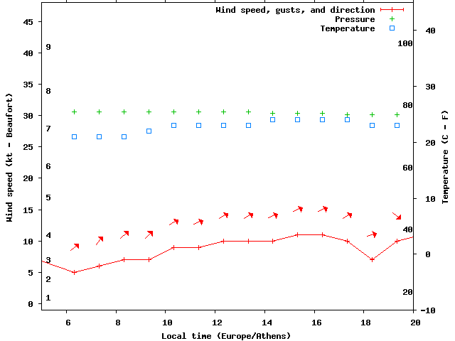 Dawn after 5:00; dusk before 20:00 local time (Europe/Athens).