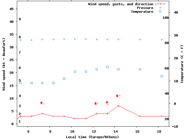 Dawn after 5:00; dusk before 19:00 local time (Europe/Athens).