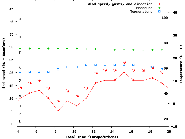 Dawn after 4:00; dusk before 20:00 local time (Europe/Athens).