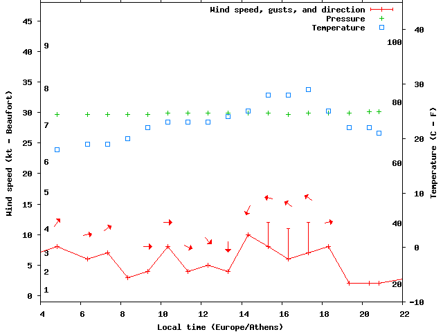 Dawn after 4:00; dusk before 22:00 local time (Europe/Athens).