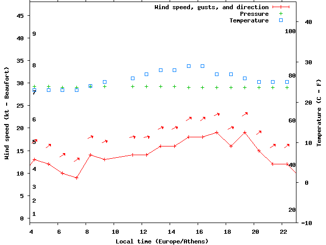Dawn after 4:00; dusk before 23:00 local time (Europe/Athens).