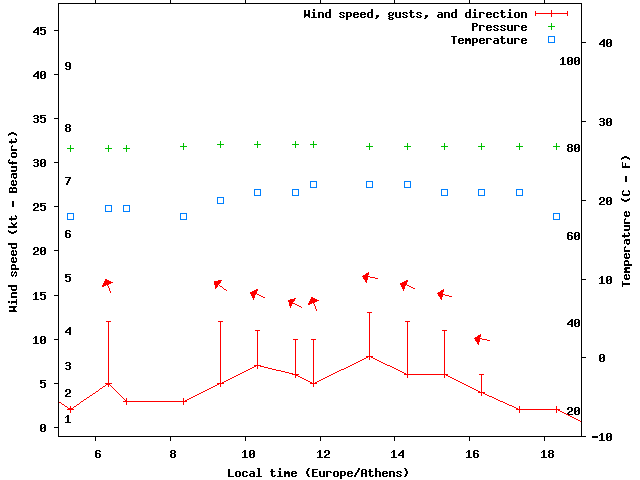 Dawn after 5:00; dusk before 19:00 local time (Europe/Athens).