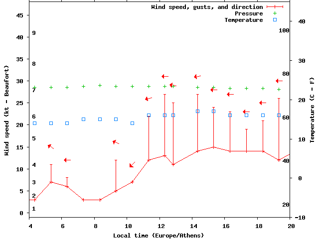 Dawn after 4:00; dusk before 20:00 local time (Europe/Athens).