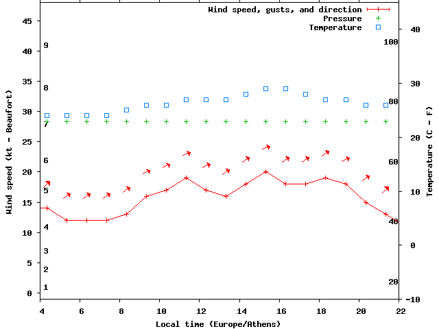 Dawn after 4:00; dusk before 22:00 local time (Europe/Athens).
