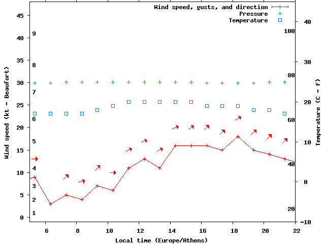 Dawn after 5:00; dusk before 22:00 local time (Europe/Athens).