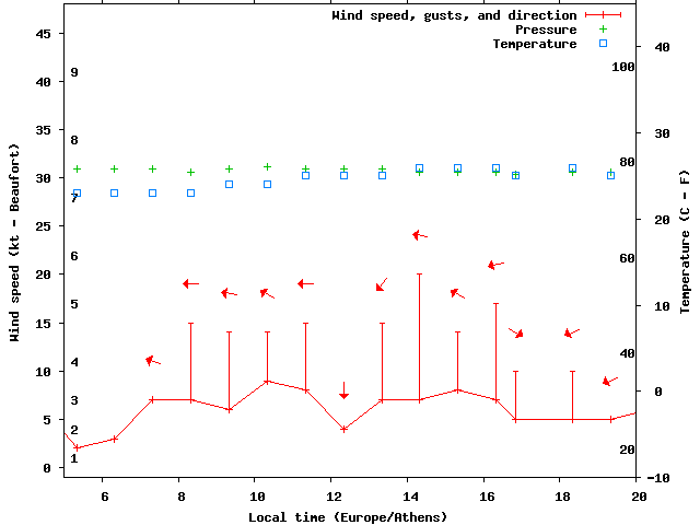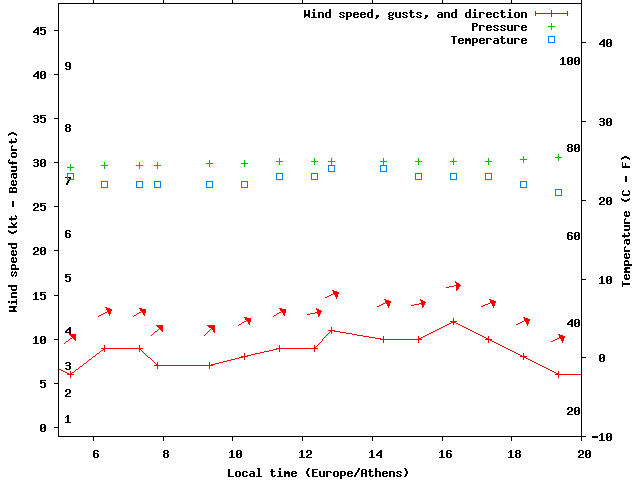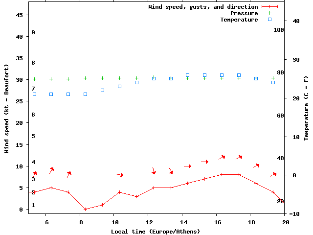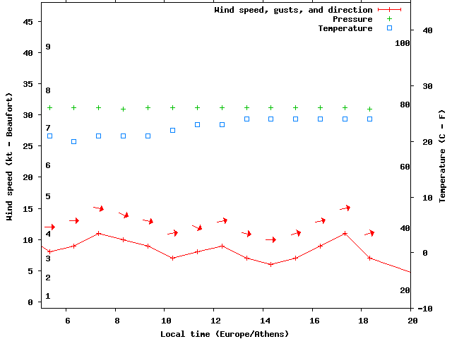 Dawn after 5:00; dusk before 20:00 local time (Europe/Athens).