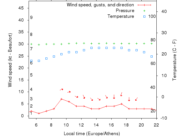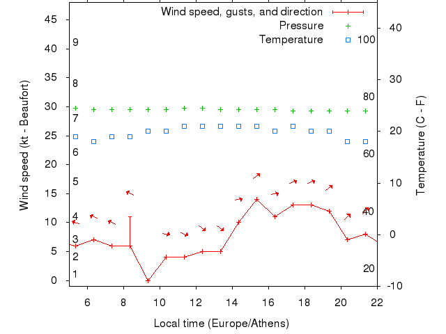 Dawn after 5:00; dusk before 22:00 local time (Europe/Athens).
