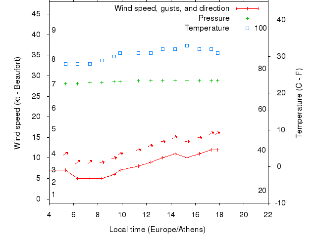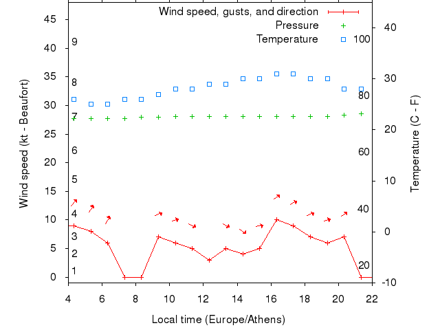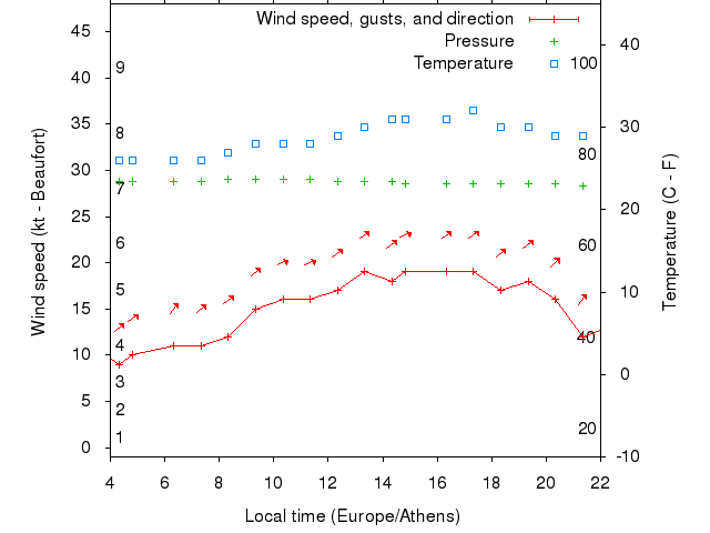 Dawn after 4:00; dusk before 22:00 local time (Europe/Athens).