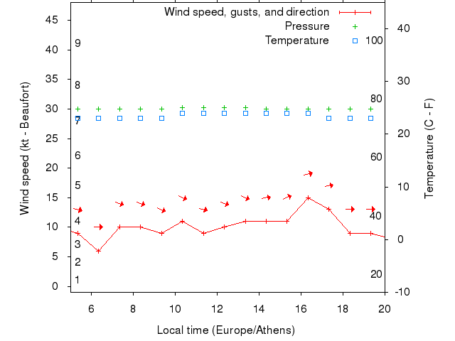 Dawn after 5:00; dusk before 20:00 local time (Europe/Athens).