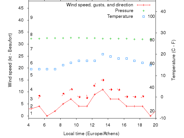 Dawn after 4:00; dusk before 20:00 local time (Europe/Athens).