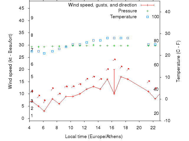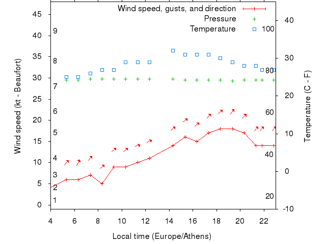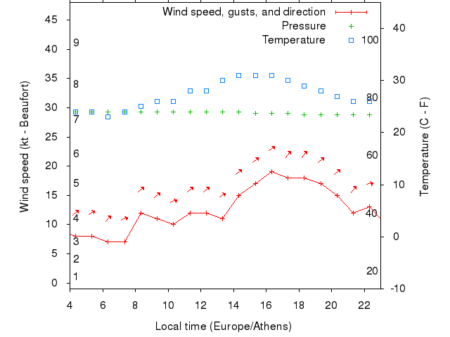 Dawn after 4:00; dusk before 23:00 local time (Europe/Athens).