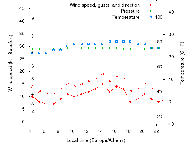 Dawn after 4:00; dusk before 23:00 local time (Europe/Athens).