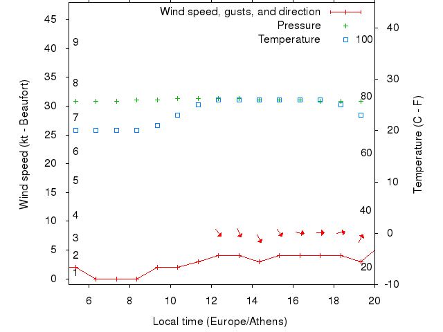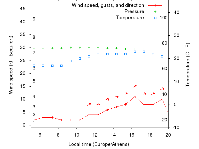 Dawn after 5:00; dusk before 20:00 local time (Europe/Athens).