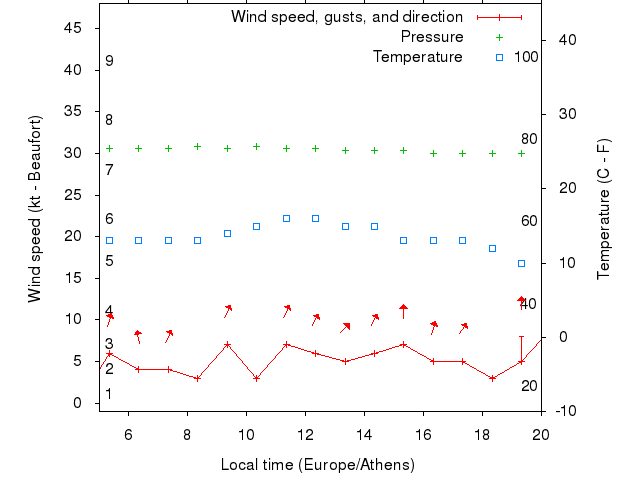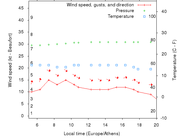 Dawn after 5:00; dusk before 20:00 local time (Europe/Athens).