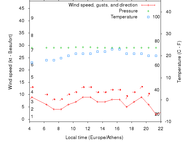 Dawn after 4:00; dusk before 22:00 local time (Europe/Athens).