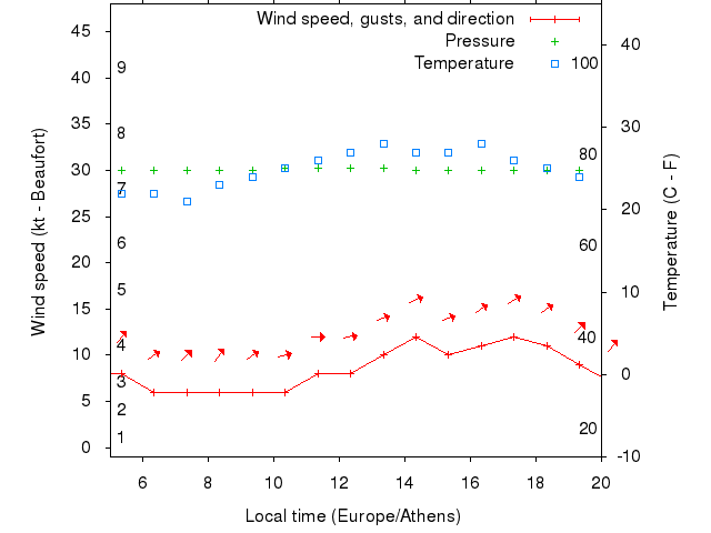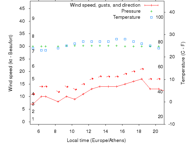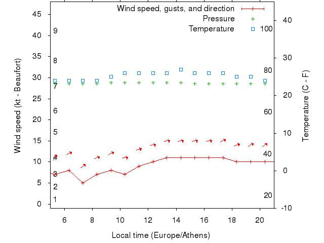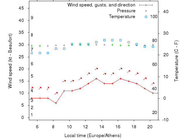 Dawn after 5:00; dusk before 21:00 local time (Europe/Athens).