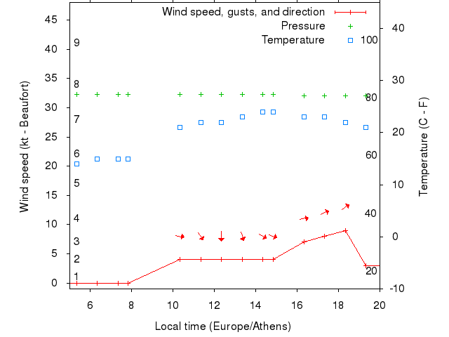 Dawn after 5:00; dusk before 20:00 local time (Europe/Athens).
