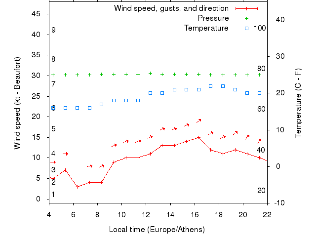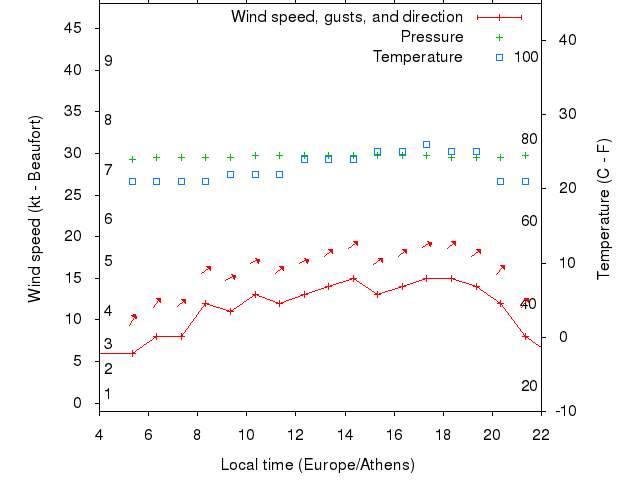 Dawn after 4:00; dusk before 22:00 local time (Europe/Athens).