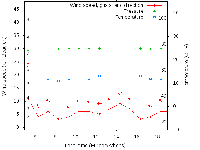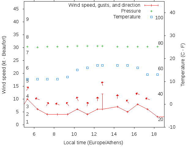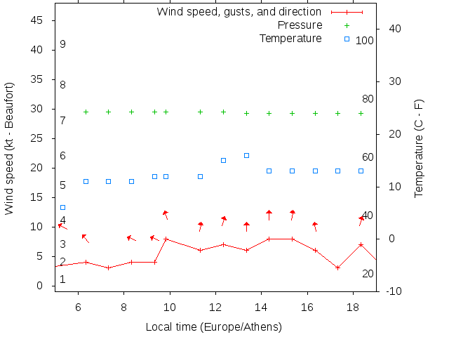 Dawn after 5:00; dusk before 19:00 local time (Europe/Athens).