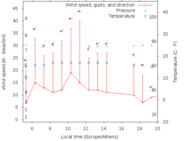 Dawn after 5:00; dusk before 20:00 local time (Europe/Athens).
