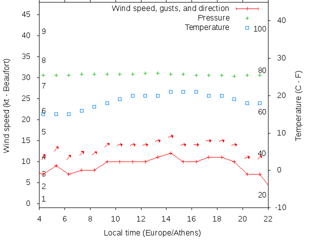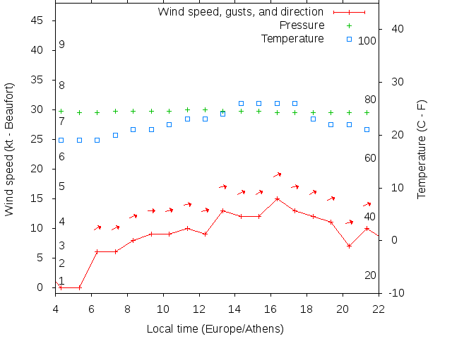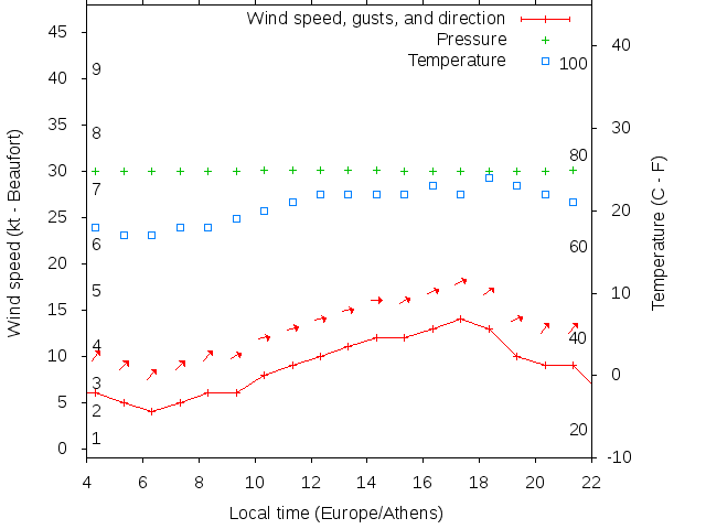 Dawn after 4:00; dusk before 22:00 local time (Europe/Athens).
