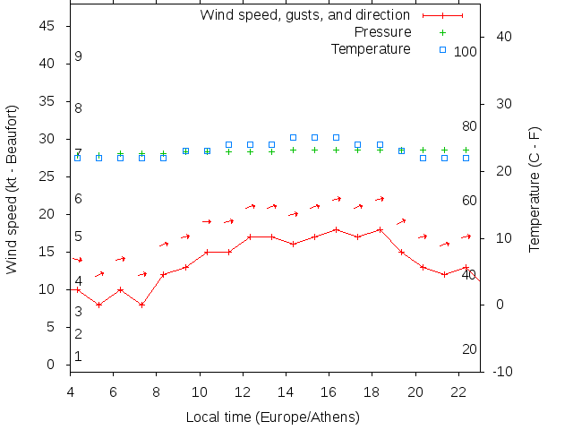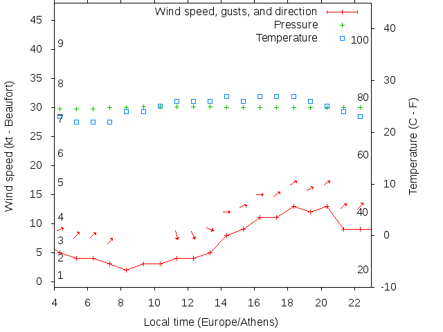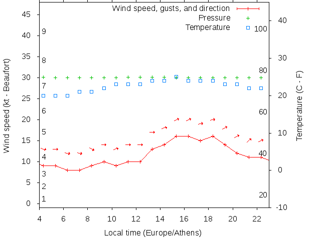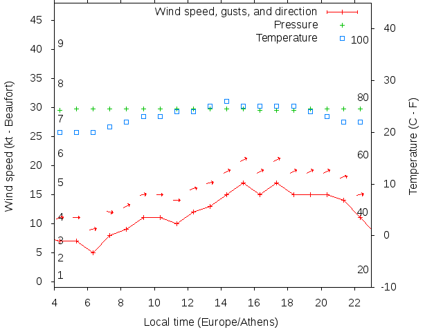Dawn after 4:00; dusk before 23:00 local time (Europe/Athens).