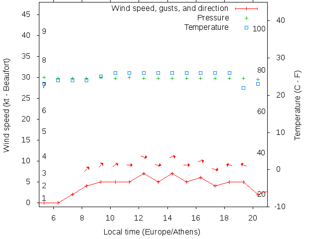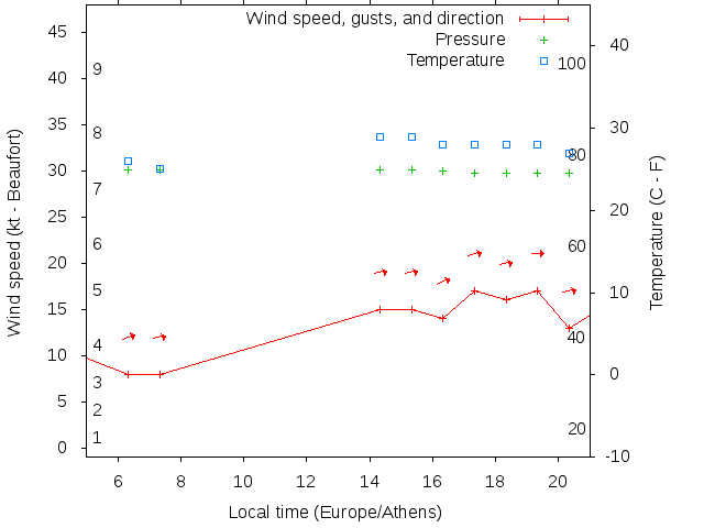 Dawn after 5:00; dusk before 21:00 local time (Europe/Athens).