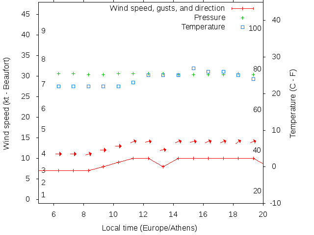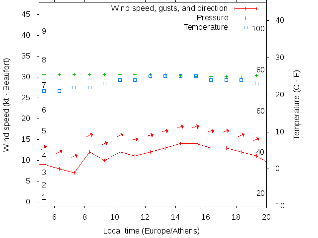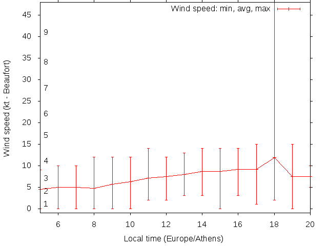 Dawn after 5:00; dusk before 20:00 local time (Europe/Athens).