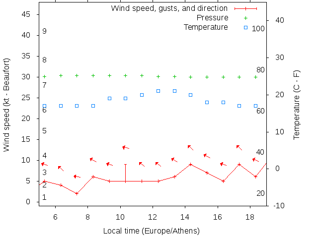 Dawn after 5:00; dusk before 19:00 local time (Europe/Athens).