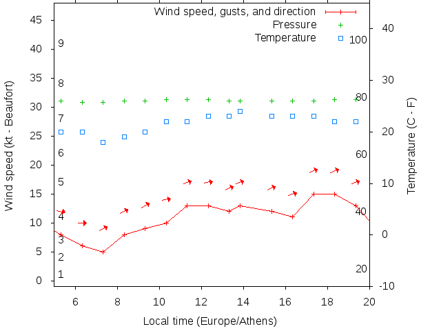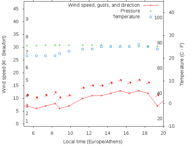 Dawn after 5:00; dusk before 20:00 local time (Europe/Athens).