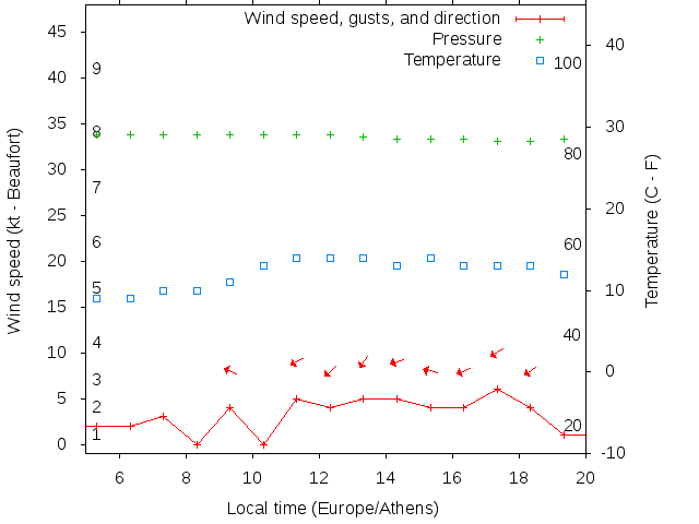 Dawn after 5:00; dusk before 20:00 local time (Europe/Athens).