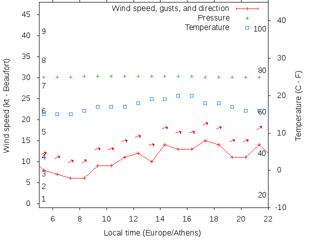 Dawn after 5:00; dusk before 22:00 local time (Europe/Athens).