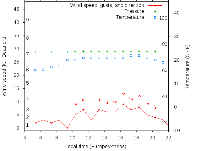 Dawn after 4:00; dusk before 22:00 local time (Europe/Athens).