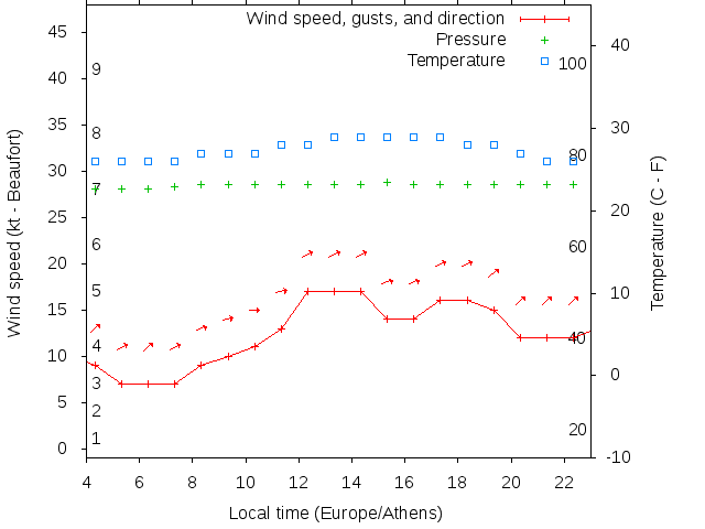 Dawn after 4:00; dusk before 23:00 local time (Europe/Athens).