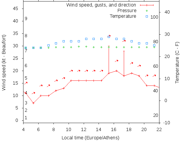 Dawn after 4:00; dusk before 22:00 local time (Europe/Athens).