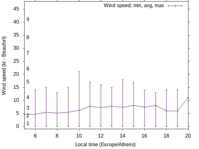 Dawn after 5:00; dusk before 20:00 local time (Europe/Athens).