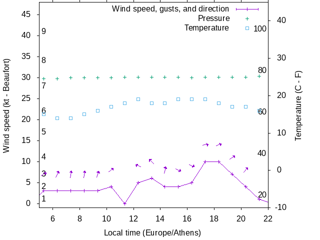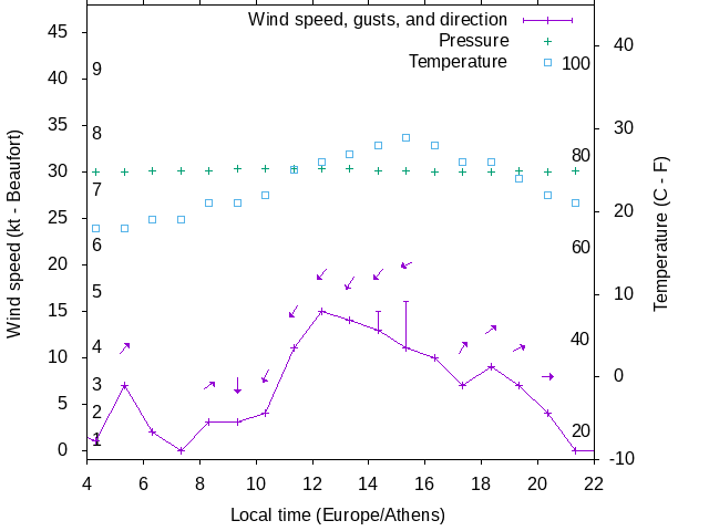 Dawn after 5:00; dusk before 22:00 local time (Europe/Athens).