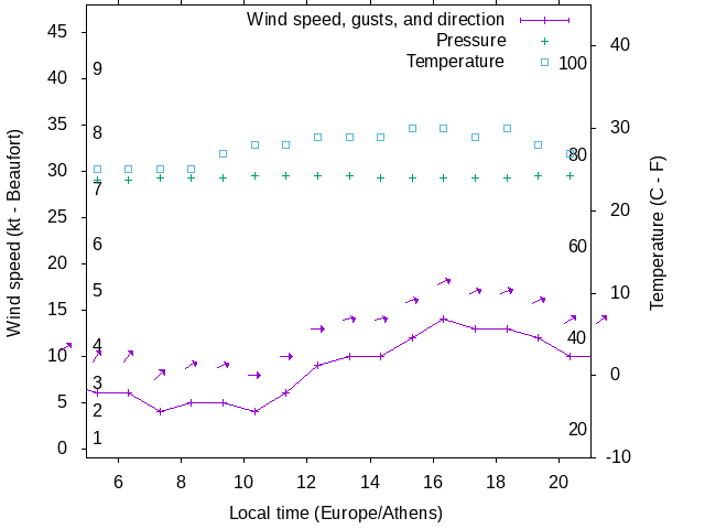 Dawn after 4:00; dusk before 22:00 local time (Europe/Athens).