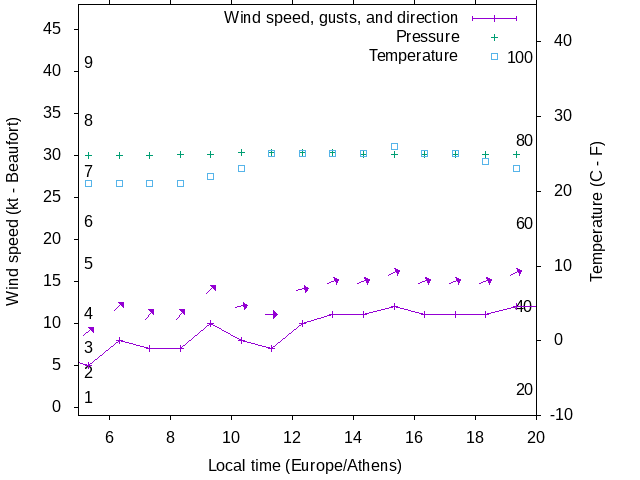 Dawn after 5:00; dusk before 20:00 local time (Europe/Athens).