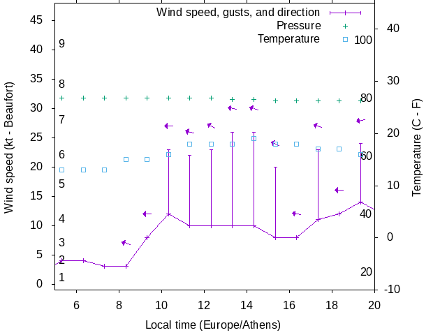 Dawn after 5:00; dusk before 20:00 local time (Europe/Athens).