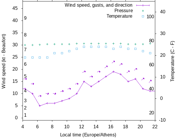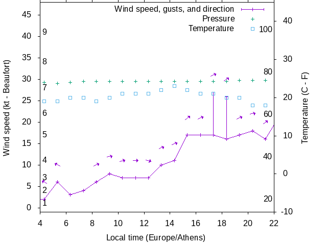 Dawn after 4:00; dusk before 22:00 local time (Europe/Athens).
