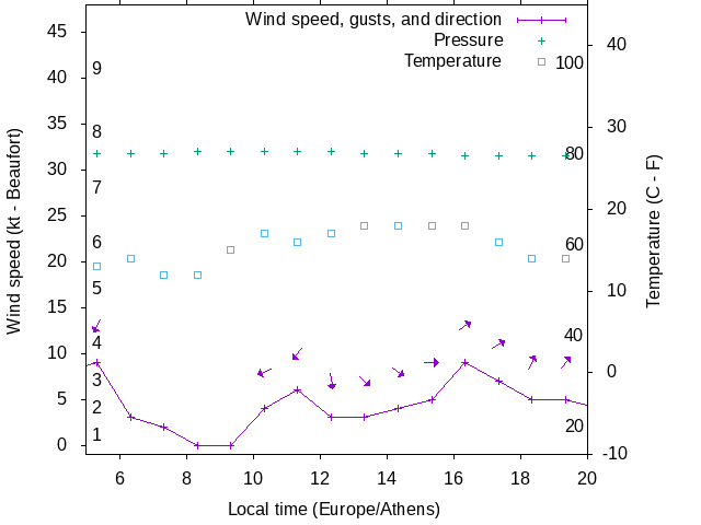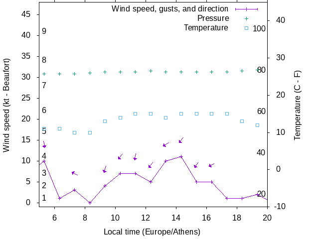 Dawn after 5:00; dusk before 20:00 local time (Europe/Athens).