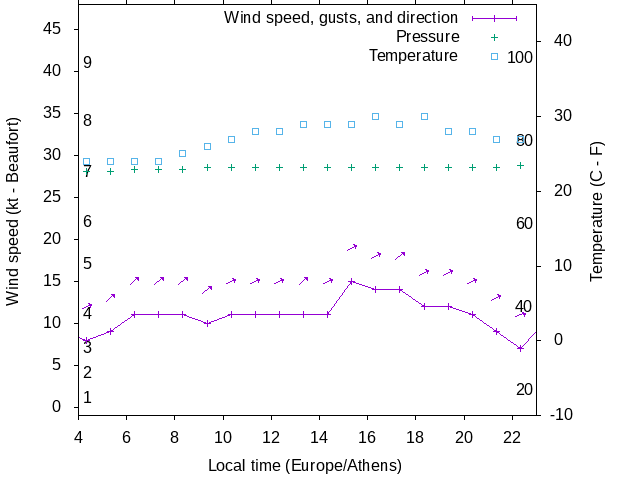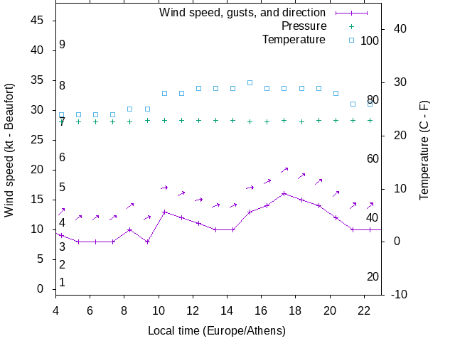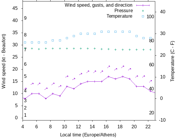 Dawn after 4:00; dusk before 23:00 local time (Europe/Athens).