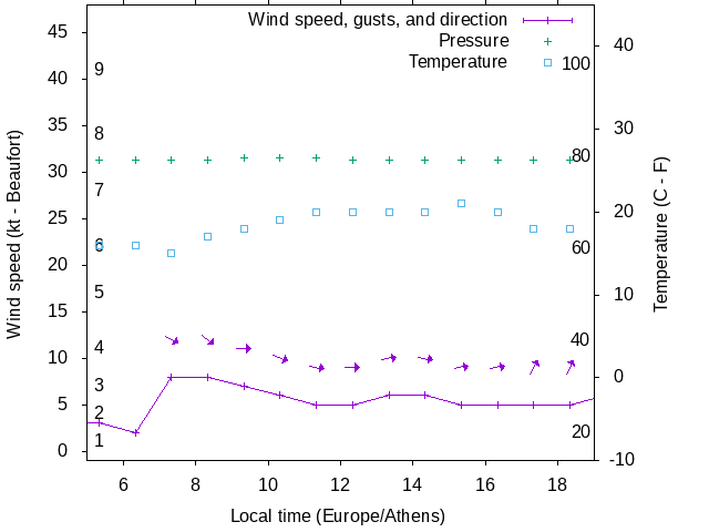 Dawn after 5:00; dusk before 19:00 local time (Europe/Athens).