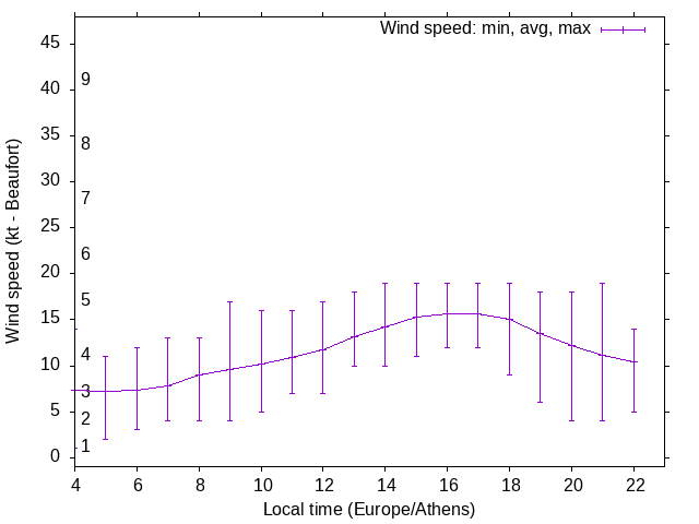 Dawn after 4:00; dusk before 23:00 local time (Europe/Athens).