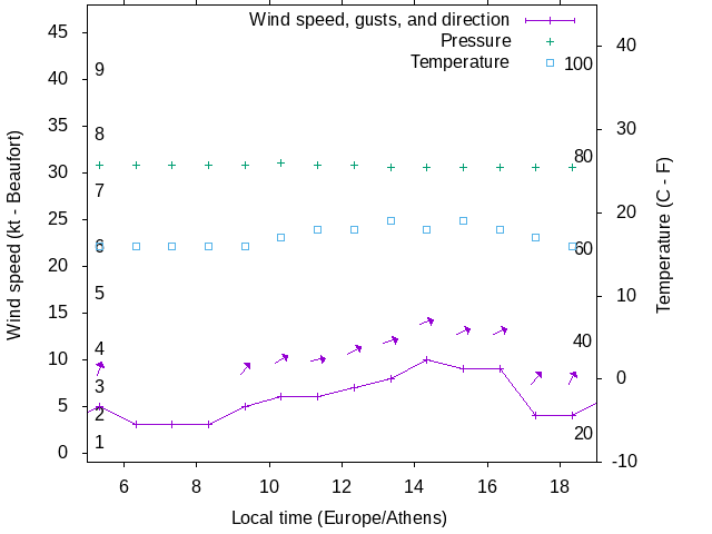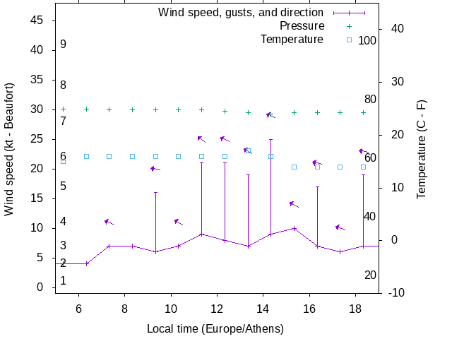 Dawn after 5:00; dusk before 19:00 local time (Europe/Athens).