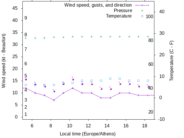 Dawn after 5:00; dusk before 19:00 local time (Europe/Athens).
